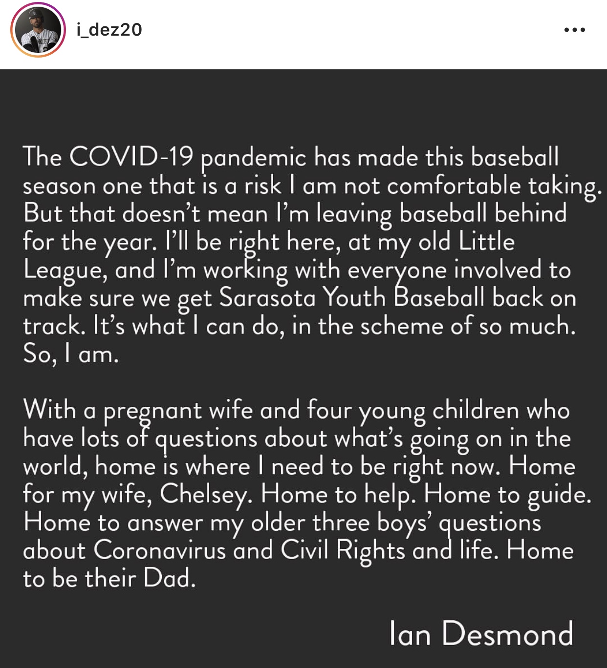 The Athletic Mlb On Twitter Home Is Where I Need To Be Right Now Read Ian Desmond S Full Message To Fans Https T Co 34wrub8geo Https T Co Tfhcn6cw0e Twitter